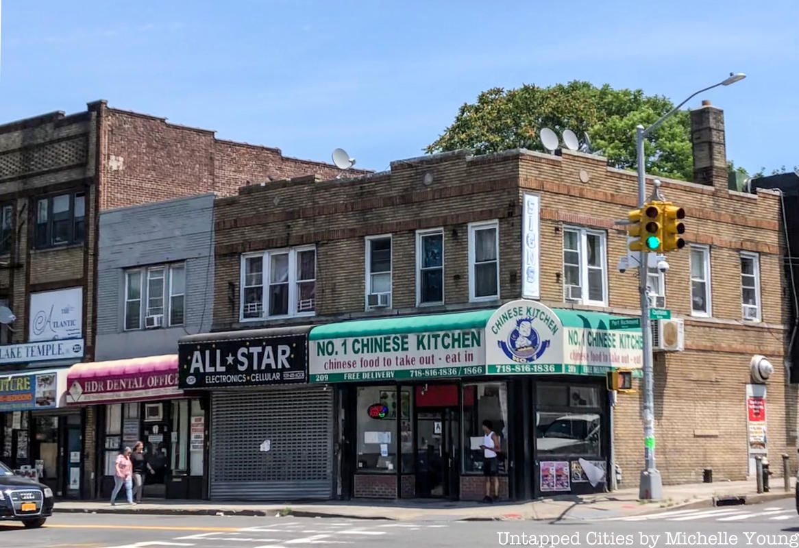 Vanderbilt spent $27,000 on his 40-foot-tall mansion, whose architect is unknown. The home was built in “modified Gothic” style with six fluted columns and a Grecian portico. It was constructed of yellow Virginia pine, with imported materials such as Egyptian marble, French plate and South American mahogany. But just six years after its construction, Vanderbilt’s business became so large that he and his wife moved to Manhattan, which greatly disappointed Sophie. The home was then bought by financier George Law, which was later sold to George H. Daley. It was badly damaged by a fire in 1882, and although it was still standing in 1905, it was later demolished. Today, a row of low-rise buildings stand in its place, which include a Chinese take-out restaurant on the ground floor.