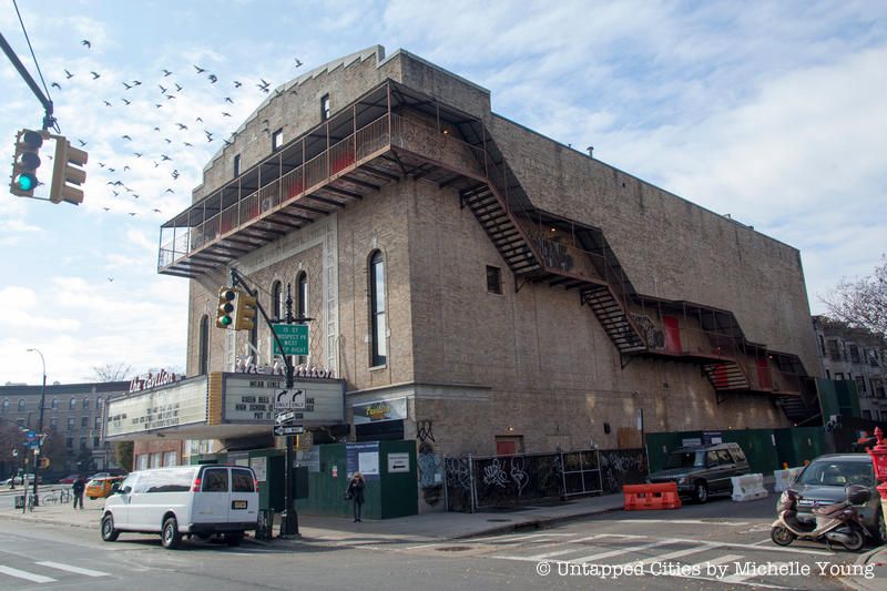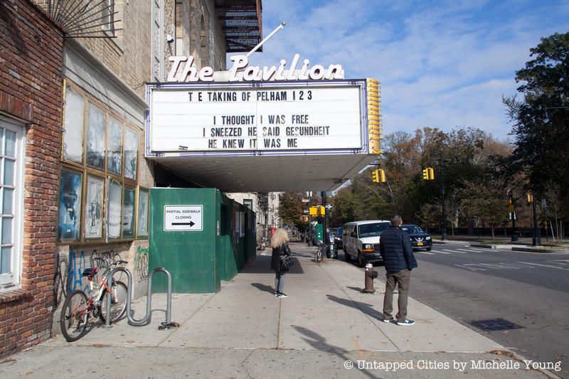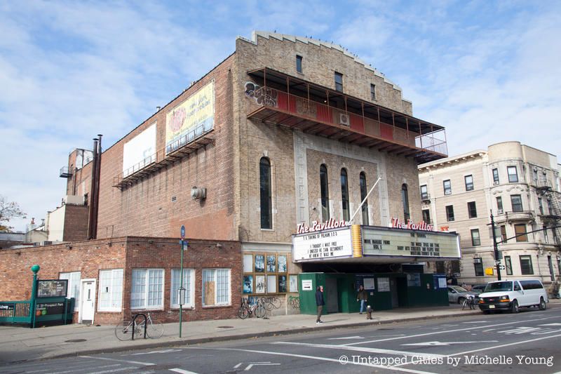 It’s easy to imagine The Pavilion Theatre in south Park Slope in its heyday. Built in 1928, The Pavilion sits at the southwest corner of Prospect Park, on a roundabout designed by park architects Frederick Law Olmsted and Calvert Vaux in an homage to Paris’ grand boulevards. Today, the building still looms tall with a striking marquee and elongated windows on the facade – though clearly all worse for the wear following decades of decline.
