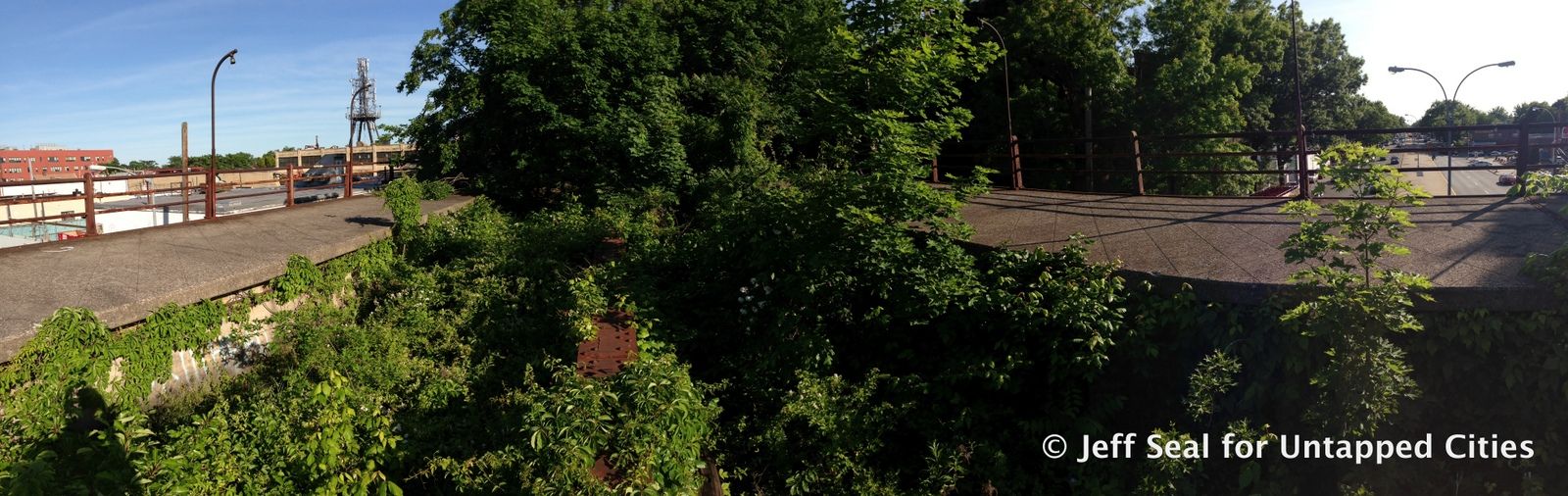 There has been much debate about the QueensWay, a plan for turning the defunct Long Island Railroad Rockaway Branch into a public park like Manhattan’s High Line. The 3.5 mile stretch starts in Rego Park and terminates at Rockaway Blvd in Ozone Park. While additional public space would undoubtedly be positive for Queens, there have also been calls to re-activate the rail line to address underserved transportation areas. Earlier, we took a look at the baseball graveyard discovered along the QueensWay by Will Ellis of AbandonedNYC and explored the non-elevated portion of the QueensWay. Today we’re sharing this video by Untapped contributor Jeff Seal, who traversed the entire length of the QueensWay. The film shows the train tracks passing through fallen trees and bushes, over bridges and elevated railways–there are even two abandoned passenger platforms. For more, see the panoramic photos taken by Jeff, below.