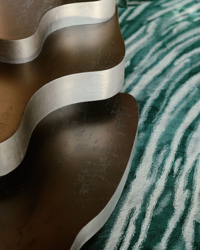 From the tucked-away corner bookshelf design by Toro to his statement fireplace flanked by custom stone light fixtures, no detail or little nook went unnoticed. Every inch of space posed an opportunity to showcase contemporary French design and illustrate the natural theme. The room blends influences of Art Nouveau and Art Deco styles with shapes that are both sinuous and fluid, like the edges of a brook, as well as clean and straight.