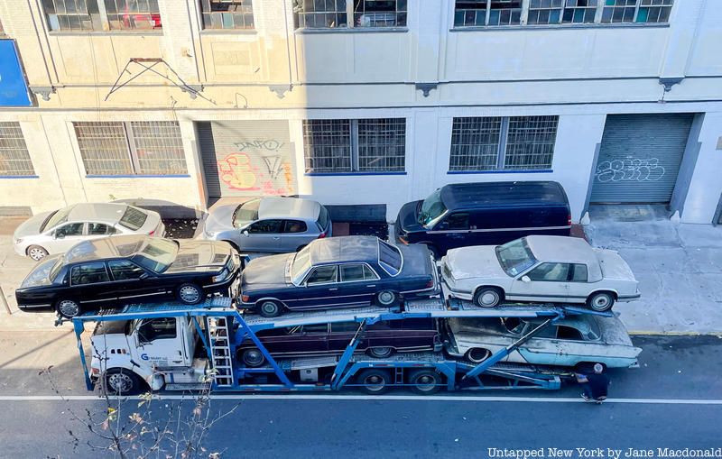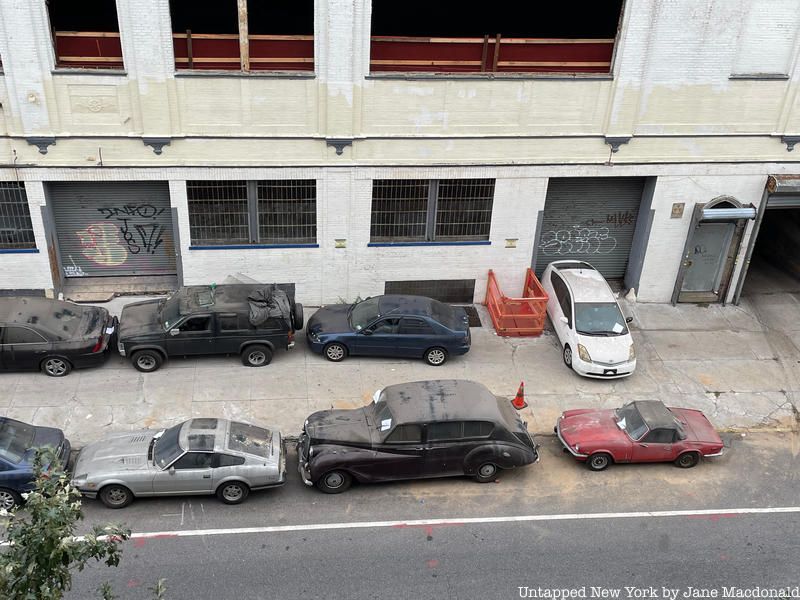 Yves once told me that some of the vintage cars were just vehicles people had left behind and stopped paying their monthly fees for. But a lot of the cars—somewhere between 70 and 80-belong to Yves who has collected them over the years. In the past, there was also an old New York City Checker taxi, The emptying of the garage has been occurring gradually over the past year but now construction workers are also actively moving debris from the interior to get it ready for demolition.