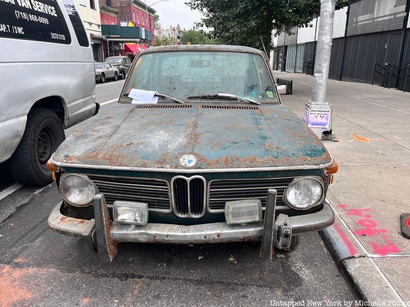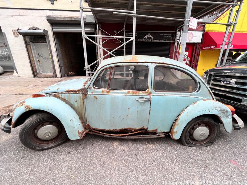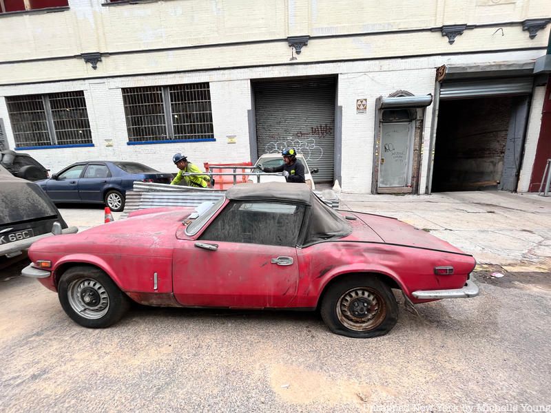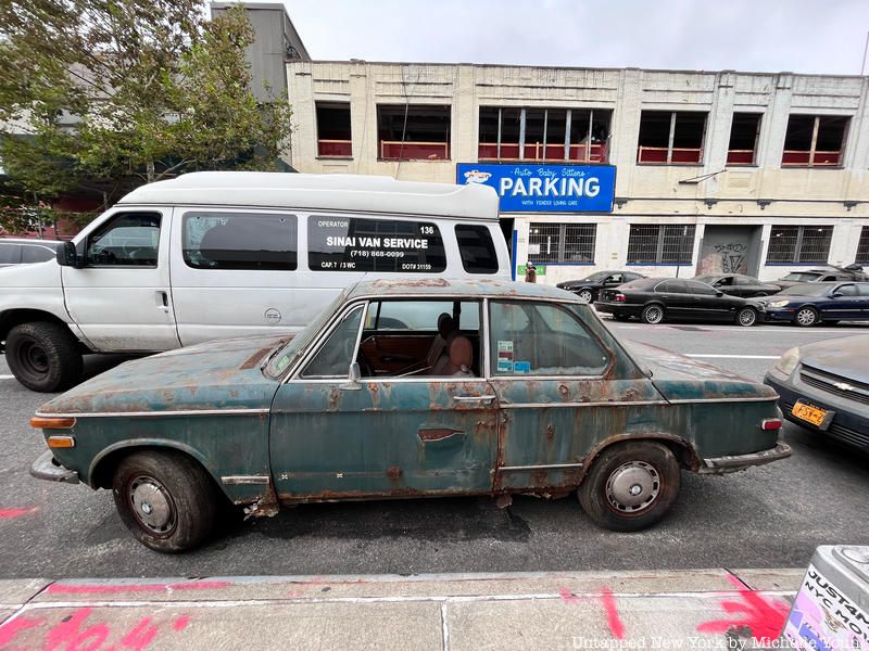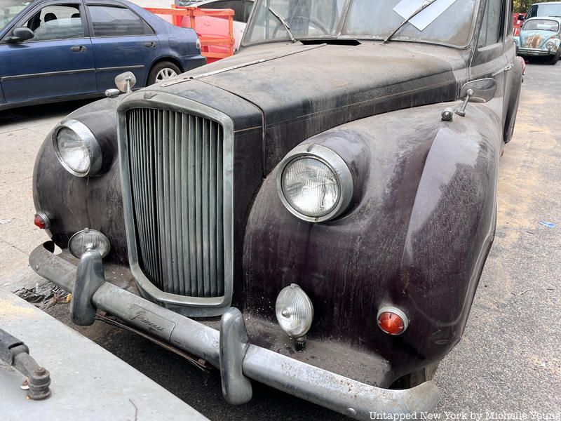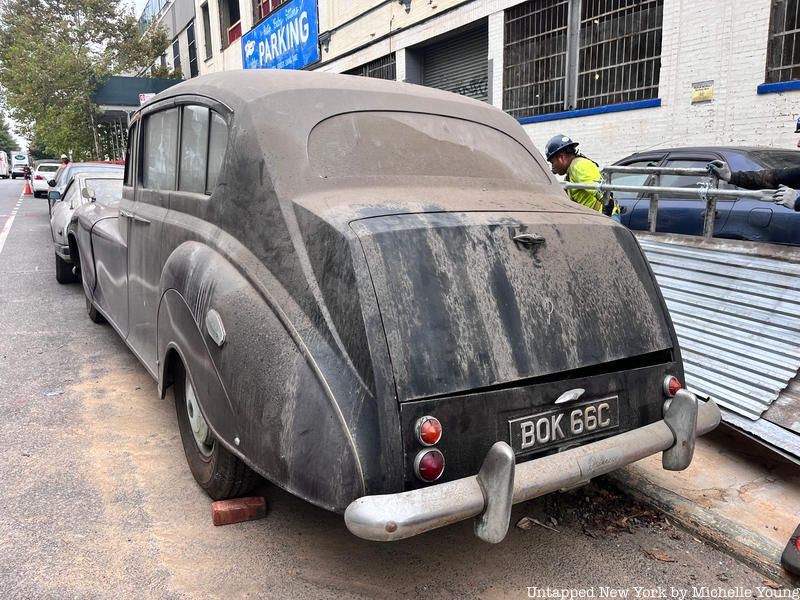 On Sterling Place just off of Nostrand Avenue in Crown Heights is one of the neighborhood cornerstones, the aptly named “Auto Baby Sitters,” a parking garage. The long-time business is going the way of much of the former industrial landscape in Crown Heights and turning into condominiums. As demolition got underway last week, a collection of vintage cars spilled out onto the streets of Sterling Place. As of last Wednesday, you could find a Princess Rolls Royce with right-hand drive like in England and British plates, a Plymouth Special De Luxe Club Coupe, an old VW Bug, a Datsun 280ZX, a Buick Electra, and more.