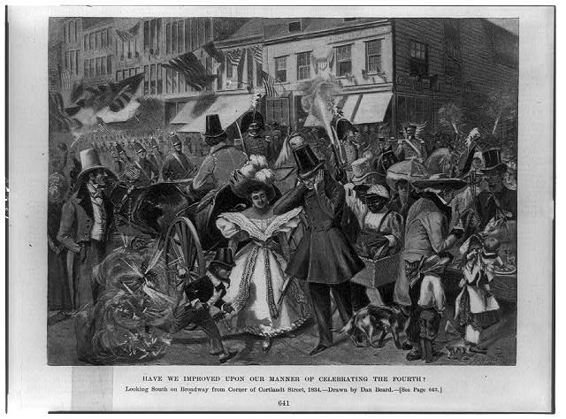 It seems that New Yorkers still celebrate the 4th of July similarly to how they did a century or two ago: by gazing at firework spectaculars, attending parades, and basking on the beach. Philadelphia started the tradition of lighting up the night sky with fireworks back in 1777, on the one year anniversary of the ratification of the Declaration of Independence. But the celebration didn’t catch on immediately, as Congress didn’t establish July 4 as a holiday until 1870 and it wasn’t a paid holiday until 1938. Though Harper’s Magazine depicted the holiday as a street festival sans fireworks in 1834, New York eventually adopted the tradition and by 1877, New Yorkers enjoyed watching firework displays over the bridges. For the past 38 years, New Yorkers have been spoiled by the Macy’s 4th of July firework extravaganza. Luckily, they are also televised for all of America to watch.