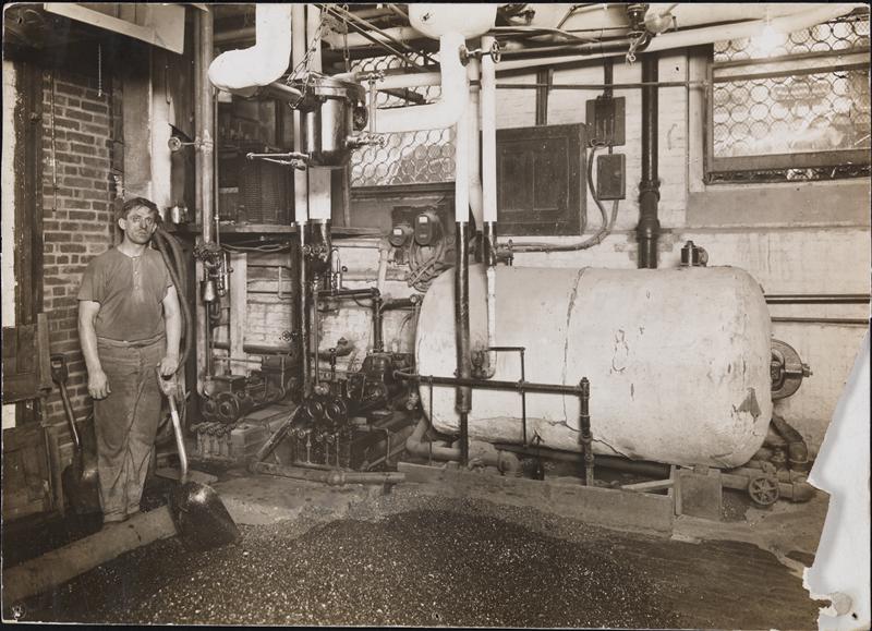 A worker in the basement of the first year-round public bathhouse in New York City on Rivington Street. Image via The Museum of the CIty of New York, circa 1910.