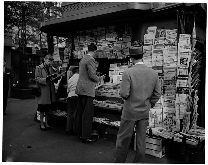 Kubrick captured a wide range of topics, from the daily adventures of a shoe shine boy or a showgirl to the architectural elite in costume at the Beaux Arts Ball. There were curiosities at the zoo and intimate moments caught in stairwells, mundane newspaper stands (photographed repeatedly) and ordinary folks walking down the street. During this five year stint, Kubrick was perfecting the art of the candid photograph, stating at 19 years old, “I think aesthetically recording spontaneous action, rather than carefully posing a picture, is the most valid and expressive use of photography.”