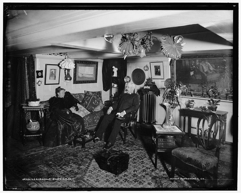 Top floor of USS Vermont at Brooklyn Navy Yard during a church service. Photo from Library of Congress. You can see more images of the interior of the USS Vermont at the Library of Congress.
