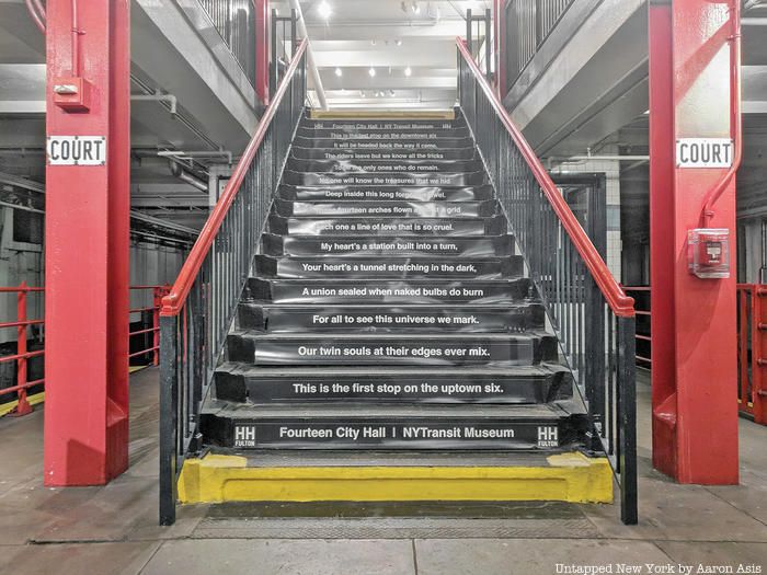 Though City Hall Station closed in 1945, it remains in the hearts and imaginations of many New Yorkers. In 2015, Untapped New York’s Artist-in-Residence Aaron Asis and our Chief Experience Officer Justin Rivers partnered for an art installation at the New York Transit Museum dedicated to the City Hall Station. Fourteen City Hall was a site-specific installation that featured a sculptural series of cords by Asis paired with a poem written by Rivers. The 14-line poem paid homage to City Hall Station’s 14-arches.