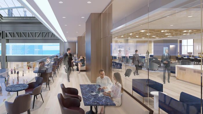 Courtesy of AmtrakThe new 255,000-square-foot Train Hall will expand Penn Station’s concourse space by 50% and provide new facilities for Amtrak and Long Island Railroad riders. Amtrak’s Club Acela will relocate to the new Tran Hall and be rebranded as the Metropolitan Lounge. The new Amtrak amenity spaces, which have a modern look and luxury feel, were designed by FXCollaborative.