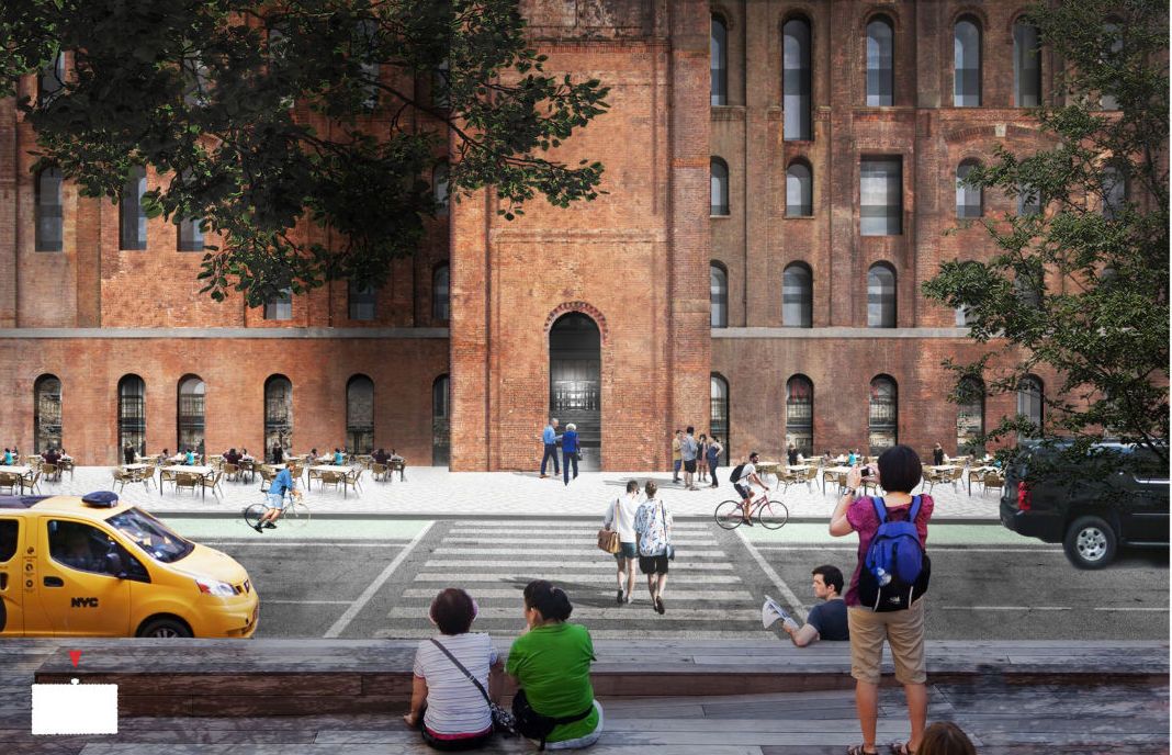 PAU design for the Domino Sugar Factory. This entryway is an example of the public-friendly capacity concept. Rendering courtesy of Practice for Architecture and Urbanism