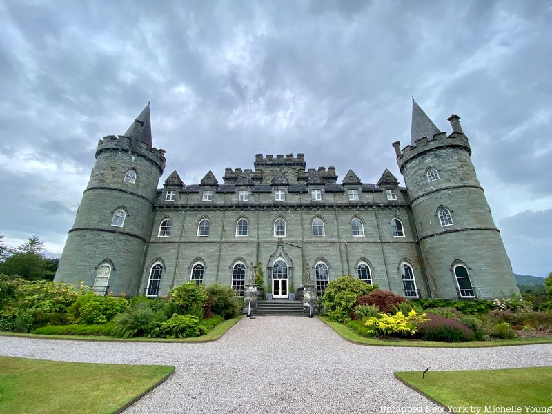The final episode of Downton Abbey Season 3 takes place partially in Scotland, at the home of the fictional Lord and Lady Flintshire. Inveraray Castle is located on the banks of Loch Fyne, 60 miles from Glasgow. Inverary Castle has been located here since the 1400s, but this current incarnation was inspired by a sketch by Vanburgh, the architect of Blenheim Palace and built in the mid 1700s.