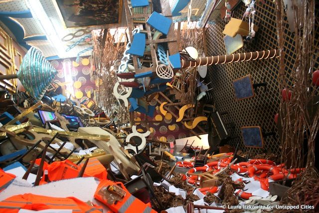 Concordia, Concordia is based on Hirschhorn’s interpretation of the sinking of the cruise ship Costa Concordia, which sunk off the coast of Italy in January 2012. After seeing photos of the wreck, Hirschhorn was inspired by the apocalyptic vision of the overturned ship with its abundance of luxury trappings piled on top of each other. In his artist’s statement, Hirschhorn says that he wanted to do something big, and “when making things Big, I do it myself, with my own hands, with my own materials, with my own visual vocabulary and with my own work.” He has definitely succeeded in making a big statement. The photo here doesn’t do it justice. Concordia, Concordia was the most impressive work I saw on the tour, and I highly recommend visiting the gallery to see the monumental scale of the exhibition for yourself. But hurry, it’s only on view until October 20th!