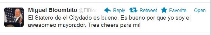 Such an utterance is hell on the ears of a Spanish speaker. However, it belongs to one person: Miguel Bloombito. The Mayor Michael Bloomberg parody Twitter account, @elbloombito, gained a strong following during New York’s Hurricane Irene. Since, the popular Twitter handle has continued to make almost 30,000 followers laugh everyday.