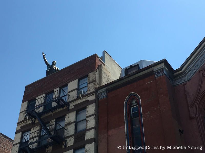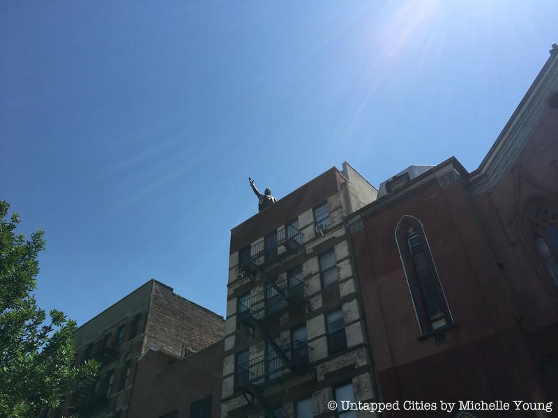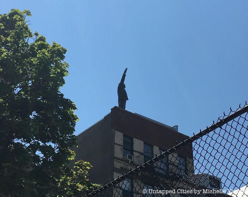Formerly located atop 250 East Houston Street on the Red Square building, the well-known Vladmir Lenin sculpture on the Lower East Side has re-emerged atop 178 Norfolk building next to the Angel Orensanz Center. The sculpture, which stood at Red Square since 1994, came down last fall but has now emerged again at a building owned by the former owners of Red Square, Michael Shaoul and Michael Rosen. The statue was built in the Soviet Union by Yuri Gerasimov, and Rosen is said to have found it in a backyard outside Moscow.