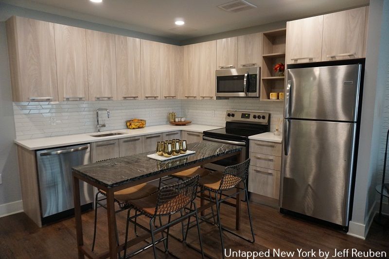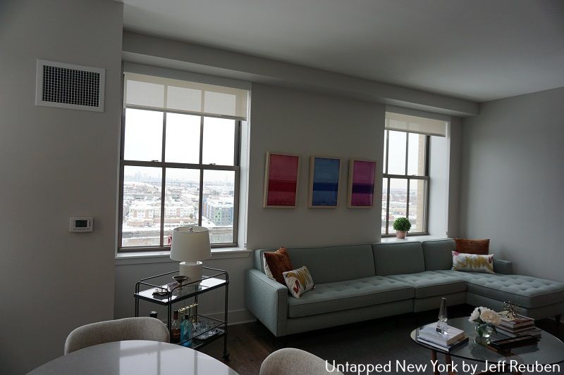 The second through fifth floors are occupied by commercial space, primarily offices but also telephone switching equipment used by Verizon, the successor to New Jersey Bell. The sixth to twentieth floors contain 264 apartments, a mix of studios, 1-, 2-, and 3-bedrooms. Of these, 53 (20 percent) are affordable to households earning 40 and 50 percent of area median income. The affordable units are spread throughout. “Both market rate and affordable tenants use the same grand lobby entrance located at 540 Broad Street,” Pine emphasizes.