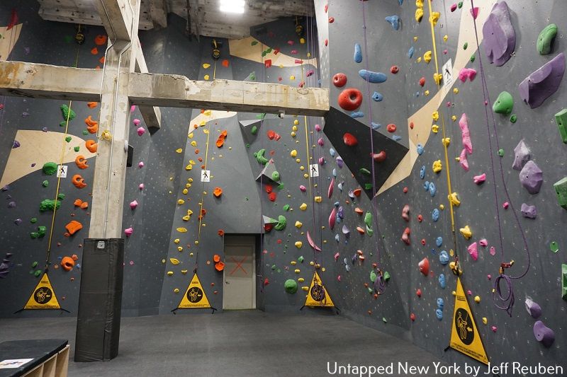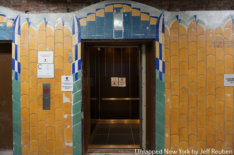 Below grade, a problem turned into an opportunity. What to do with a 40-foot deep space that once housed boilers and an employee cafeteria? Fortuitously, Method Climbing + Fitness came along, took the big, raw space, and lined it with climbing walls. It is expecting to open officially soon. Even down there, in the site’s deepest depths, one finds an Art Deco remnant, in the form of colorful tilework at the elevator vestibule.