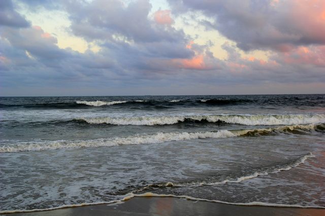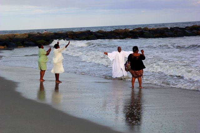 As we walked, we saw a number of interesting things. We believe we were witness to what we think was a baptism ritual: aided by two others, a young man dressed in white fell back into the water, just as a wave rumbled forward, drenching him. We stared at a woman feeding the seagulls, throwing tidbits into the air that the birds then swooped down and plucked with their beaks, while still in mid-air. We marveled at the sight of some dogs running into the water, damning all the mythical fears of water the canines were supposed to have.