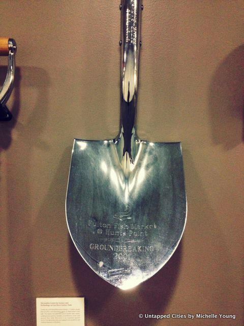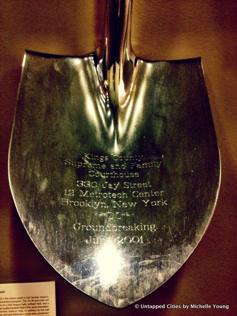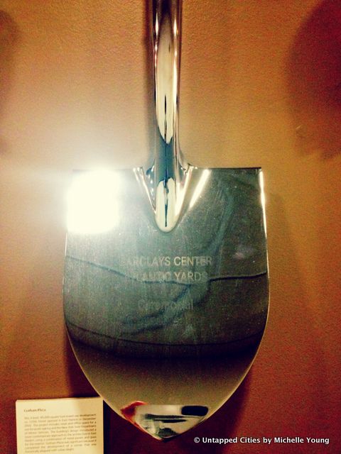 We discovered this fun find at a recent meeting in the office of NYC’s Economic Development Corporation (EDC). They have a wall of fame of sorts containing the groundbreaking shovels of many of its projects. Here are a few, including the Barclay’s Center, Atlantic Yards, Fulton Fish Market and Metrotech: