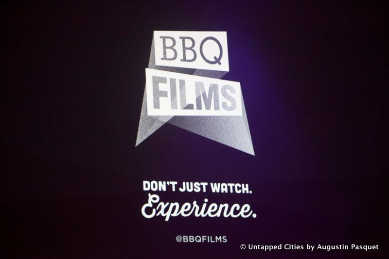 In honor of the self-proclaimed “Ghost with the Most,” handing in his bachelor card in order to settle down, BBQ Films screened Tim Burton’s 1988 cult classic horror-comedy Beetlejuice to a crowd of both living and dead patrons. But first, Beetlejuice himself flew across the audience, tethered to to the ceiling by wires, landed above the bar, and climbed down and onto the stage. The wedding guests roared with applause at the sight the striped suit-wearing, green haired, white skinned ghost, whose name you should never say more than twice.