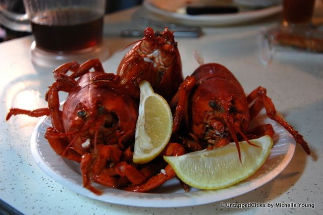 My dad made me take this photo, saying he had carefully posed the bodyless lobsters for me: