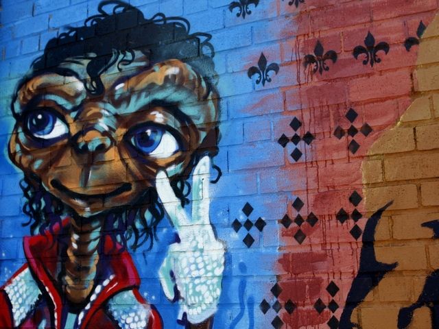 A sunny morning is perhaps the best time to check out the stunning pieces of artwork on the various walls in the Welling Court neighborhood. While the riots of color may shock you at one corner, the other end of the street would have exceptional play of silhouettes and shadows. Friendly cartoon figures plastered with giant smiles stand alongside more gritty, surrealistic figures, with flowers on their faces and striking colors galore. Sometimes the walls are not enough and the art spills over to the sidewalk, but in all cases, the effect is the same–these works are glorious and enchanting, worth “a second look,” over and over again.