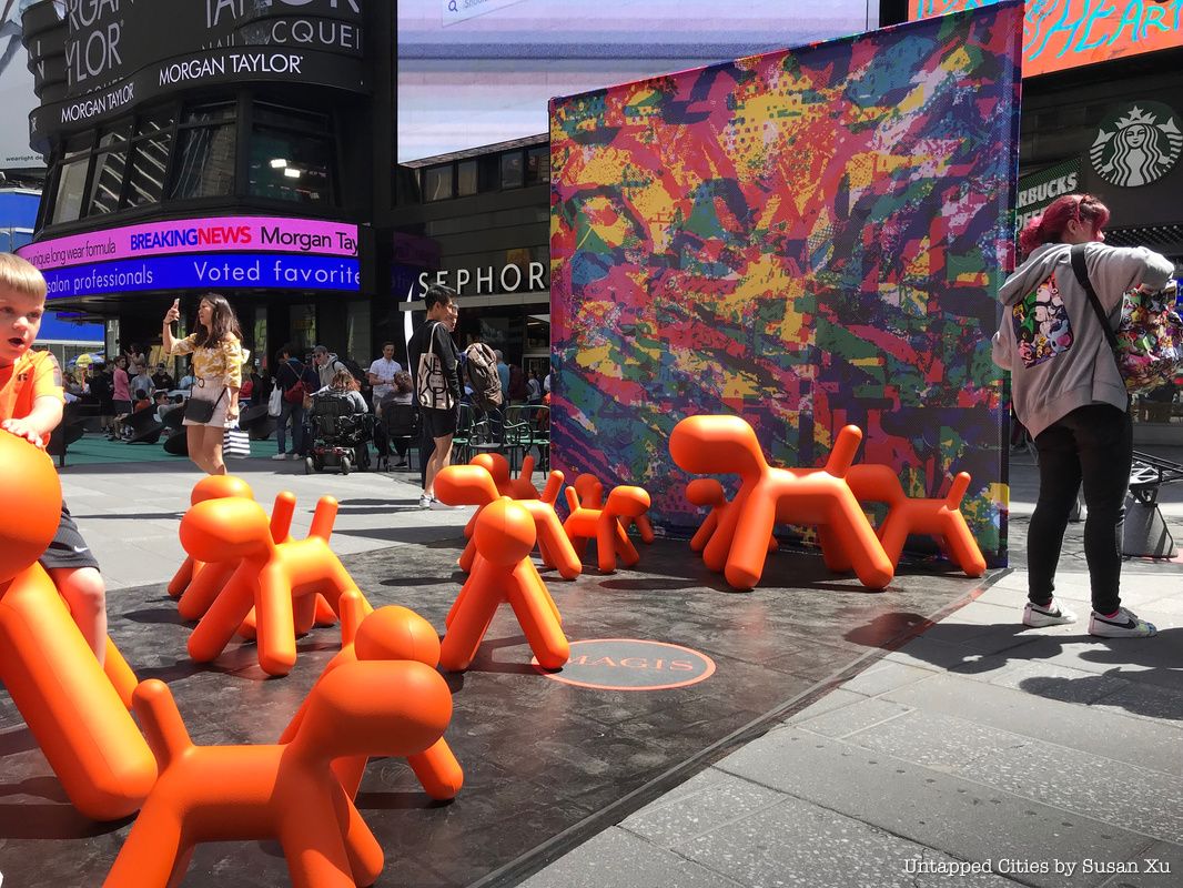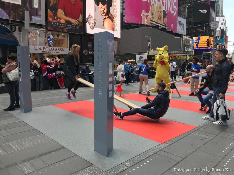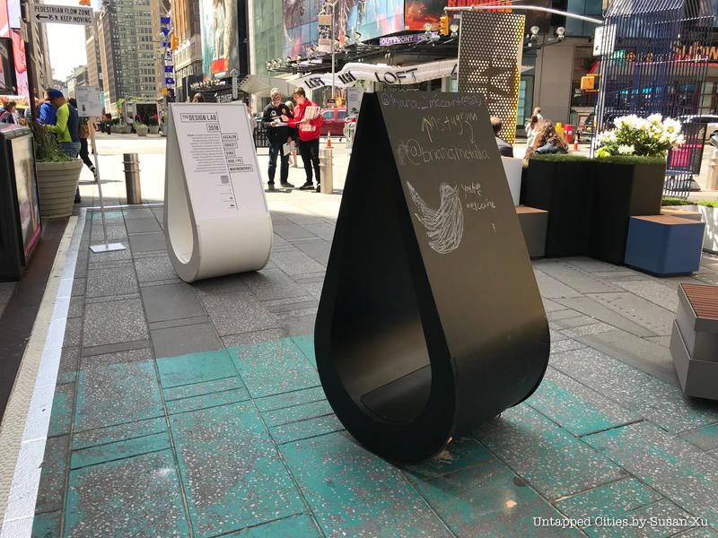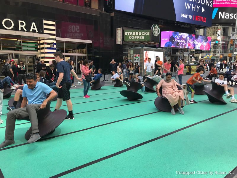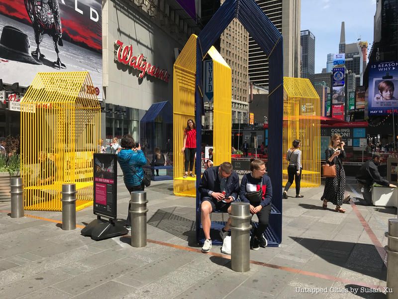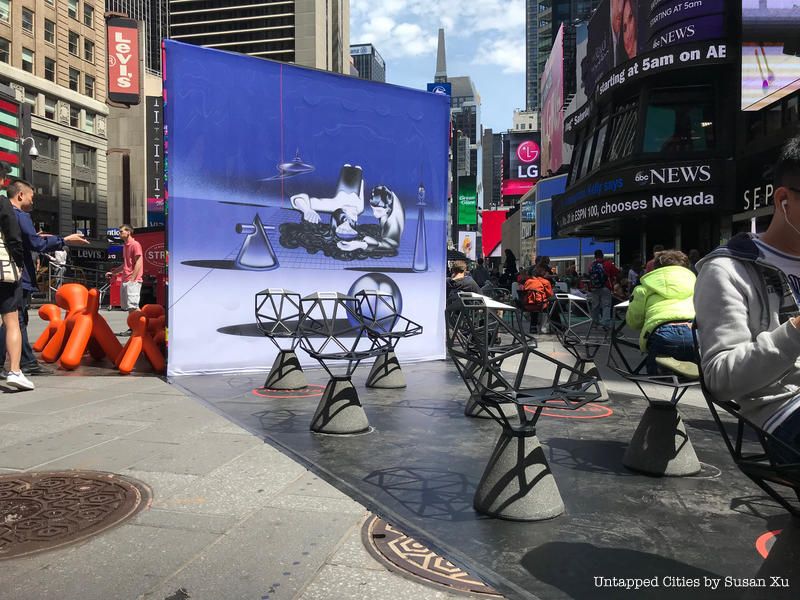 For the first year, the Times Square Alliance is also showcasing prototypes developed through the Times Square Design Lab, which commissions proposals to enhance public space from New York City designers. We found the collection wonderfully whimsical and playful — a thought likely shared by others as plenty of visitors stopped to make use of the installations (or at the very least, take photos of them).