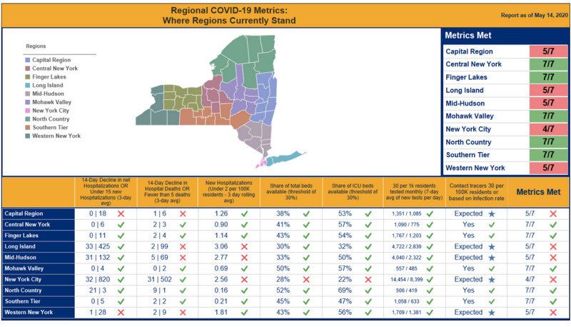 From New York State’s Regional Monitoring Dashboard as of May 14, 2020