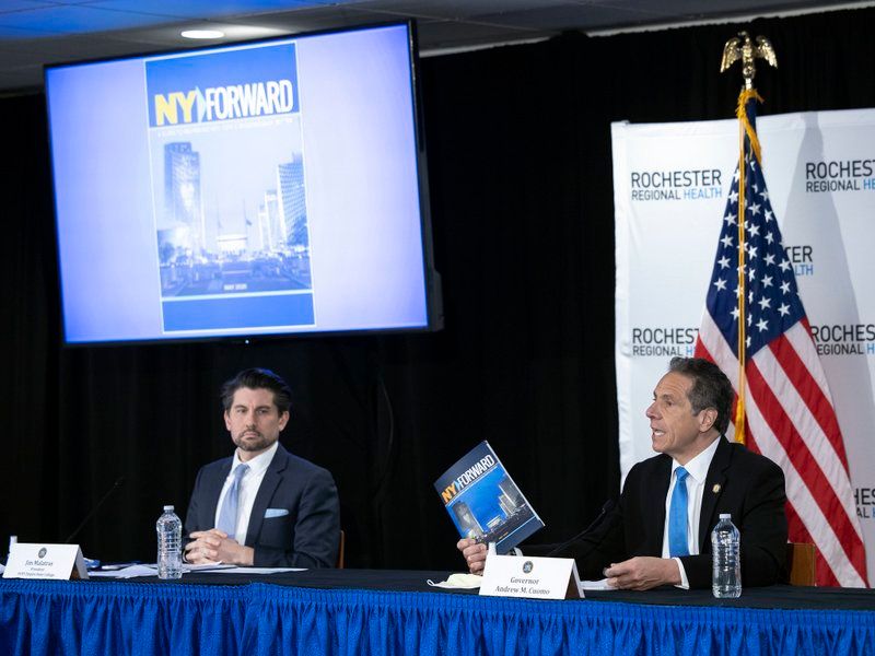 Governor Cuomo speaking at the May 10, 2020 press conference presenting NYForward. Photo by Mike Groll/Office of Governor Andrew M. Cuomo