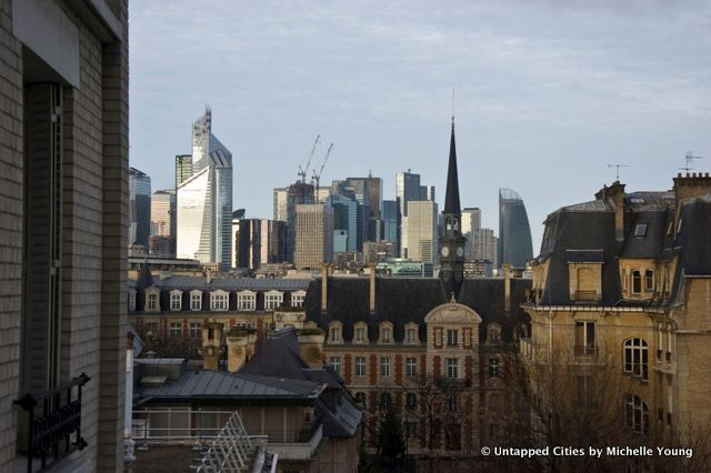 We photographed this image from an apartment in Neuilly-sur-Seine, a neighborhood that borders Paris and is home to former French president Nicholas Sarkozy. Photographed alone, it really highlights how our vision of cities can be determined by dominant architectural norms, as in Paris, or landmarks, as in New York City.
