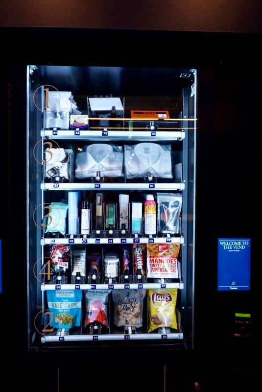 The Vend, located on the concourse level of 30 Rock, has perhaps the largest range of products we’ve seen. The six machines contain a total of 170 items, highlights which include a button-down shirt from Brooks Brothers, a Ruth Bader Ginsberg action figure, a Polaroid camera, socks, stain wipes, CBD truffles, even a Vitamin-C shot. Tishman Speyer, which developed The Vend, calls it “Rockefeller Center’s answer to life’s emergencies.” Almost 70% of the items cost $10 or less, but the price of the engagement ring, along with items by Duncan Quinn from London like cufflinks, wallet, and tie, lend a luxury factor to The Vend.